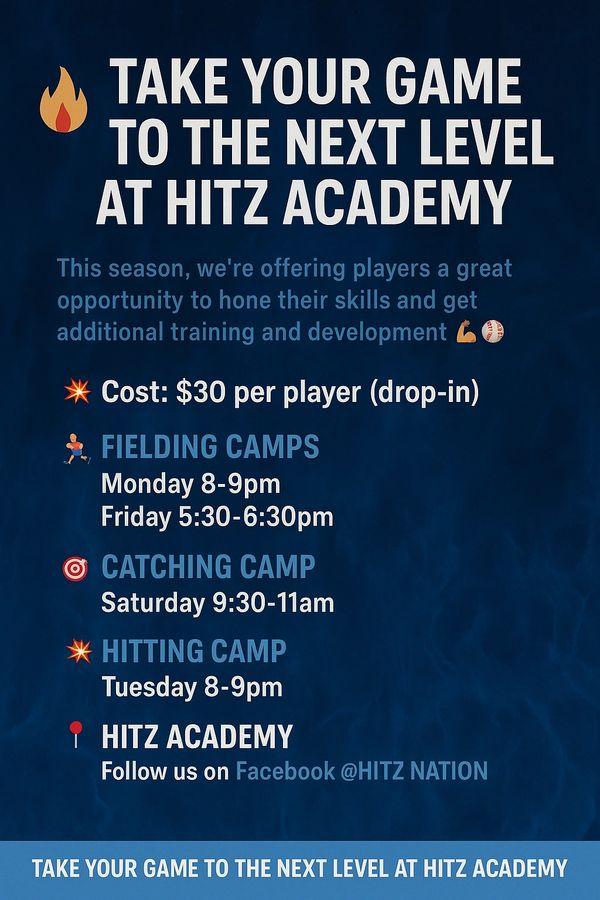 Currently HITZ Baseball & Softball Training Center is running an array of camps to help you; like our defense camp, hitting camp, and our skills camp. Availability in these camps are limited so please sign up today.